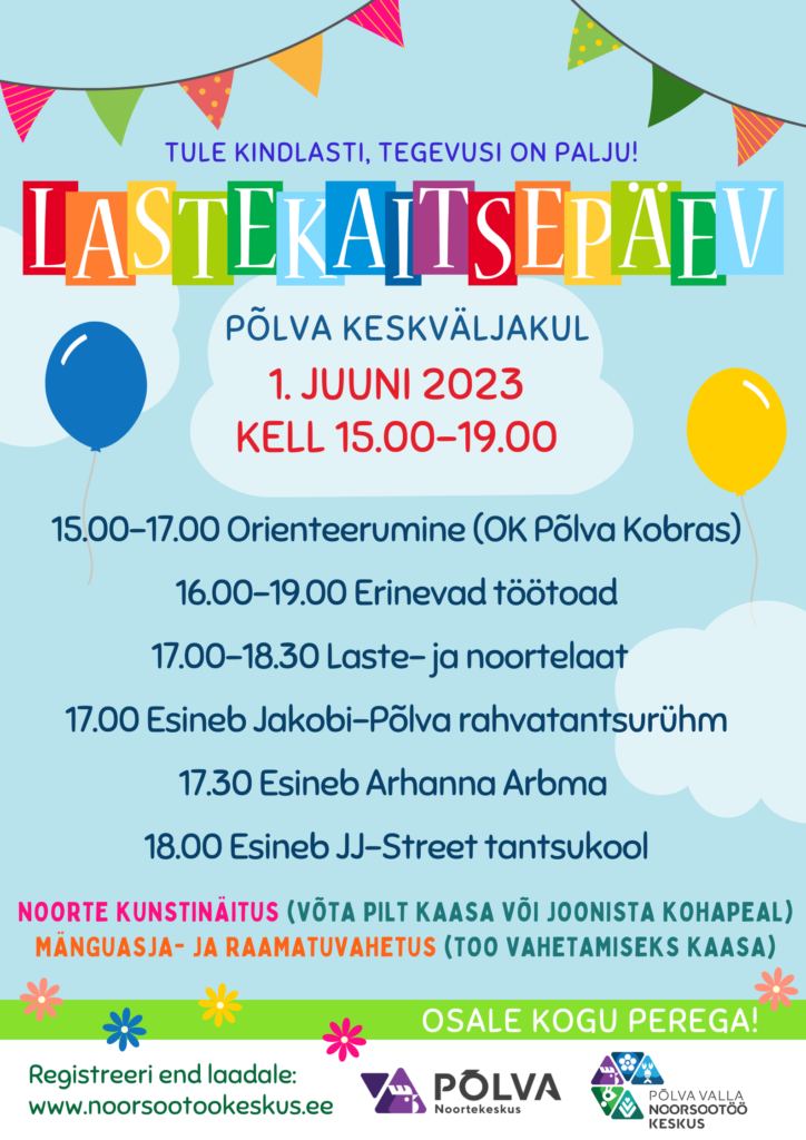 Kui vastasid mõnele küsimusele JAH, siis tule ja tee need asjad või teenused rahaks! 01.06.2023 toimub Põlva keskväljakul lastekaitsepäeva tähistamine, mille üheks osaks on laste-ja noortelaat.