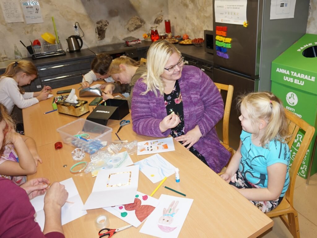 Võiks ju arvata, et kuna töötoas osalejaid oli vähe, siis meisterdamiseks oli aega maa ja ilm. Tegelikkuses aga möödusid need kaks tundi imekiirelt. Olen väga tänulik, et lapsevanemad olid järgitulemistes paindlikud ning kõik kaardid said valmis tehtud. Suure meisterdamise vahel püüdsime leida mahti ka väikeseks energiaampsuks, kuid paljud ei jõudnudki süüa ning leidlik Rosa pakkis suupisted noortele hoopis koju kaasa.