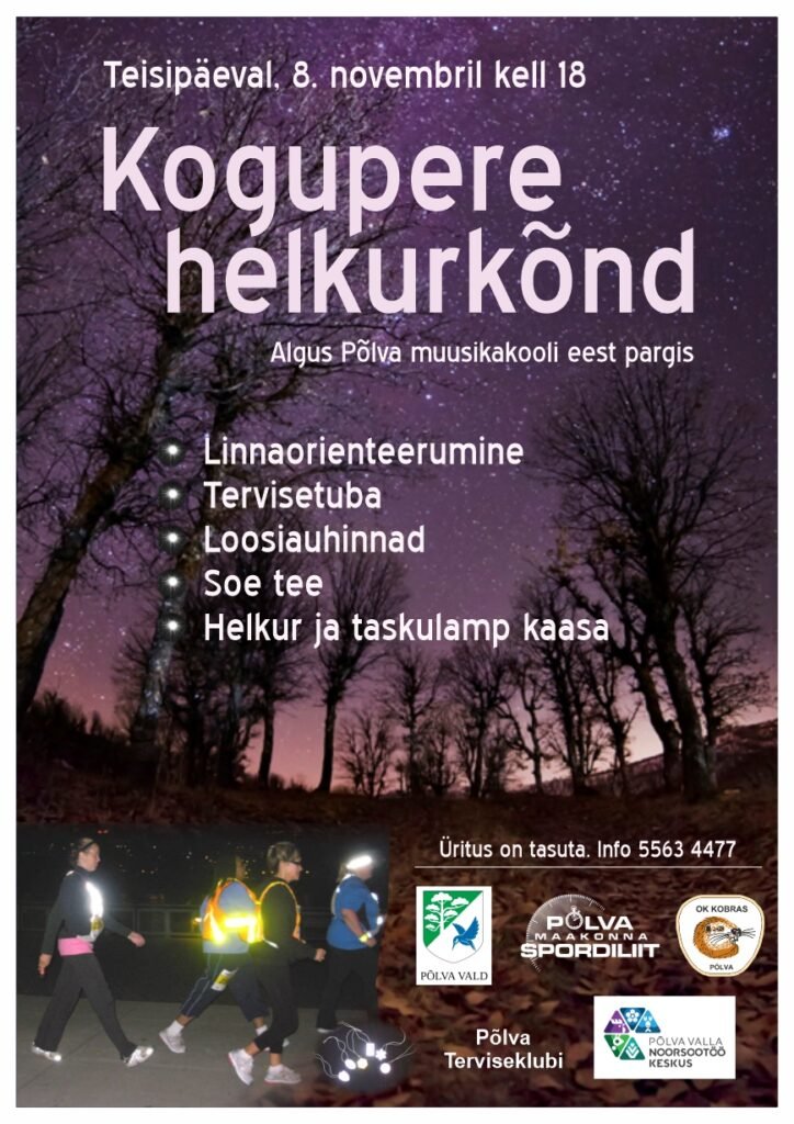 Põlva valla Noorsootöö Keskus andis panuse 08.11.2022 toimunud kogupere helkurkõnni õnnestumisse. Viisime läbi kaks tegevust – ühe Põlva Noortekeskuses ning teise Põlva vallamaja juures Mammastes. Põlva Noortekeskuses said kõik huvilised tutvuda Põlva valla Noorsootöö Keskuse logoga ning uudistada, milliseid põnevaid tegevusi on noortekeskuses üldse võimalik teha. Põlva vallamaja juures said osalejad panna proovile oma luuleanni ning lüüa kaasa kogukonna tervisevärsi kirjutamises. Tuleb tunnistada, et andekaid luulemeistreid meil jagub. Ühistööna valminud tervisevärss tuli ka ürituse lõpus Põlva Muusikakooli ees ettekandmisele.