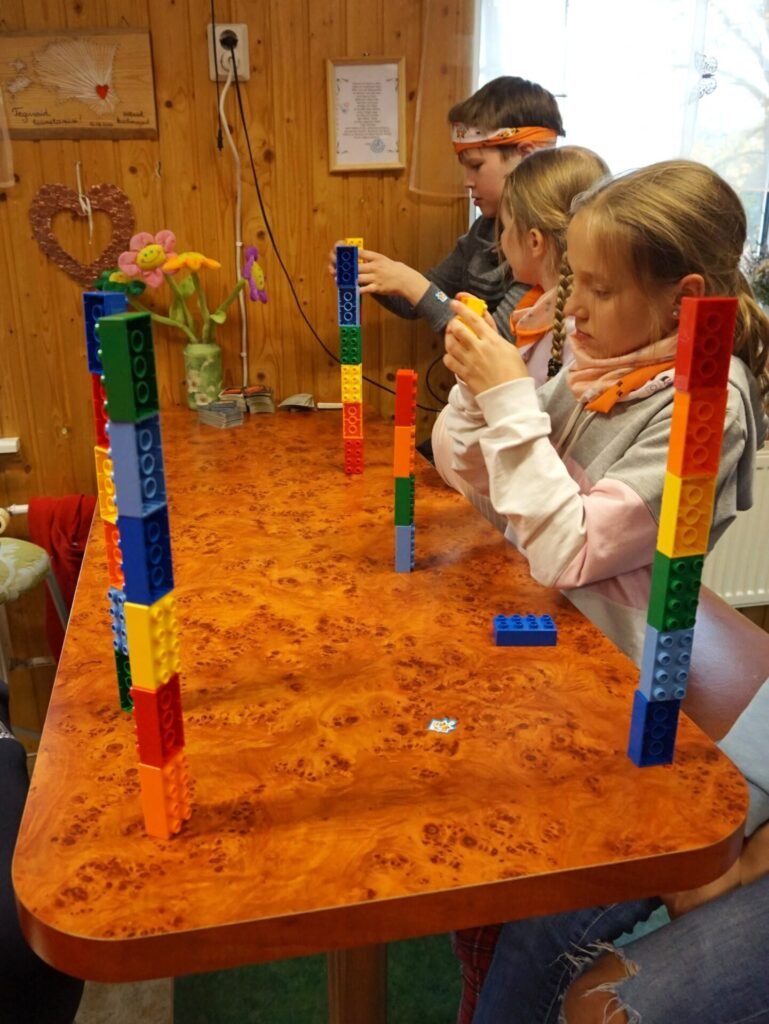 Esmalt saime me omavahel tuttavaks. Selleks valis iga noor endale LEGO 6 klotsi väljakutse jaoks mõeldud klotsitorni koos ühe erilise lisaklotsiga. Lisaklotsi abil oli lihtne noortel ennast tutvustada. Üheskoos saime teada, kellel on kodus kassid, kellele meeldivad jänesed, kes tahab saada rallisõitjaks jne.