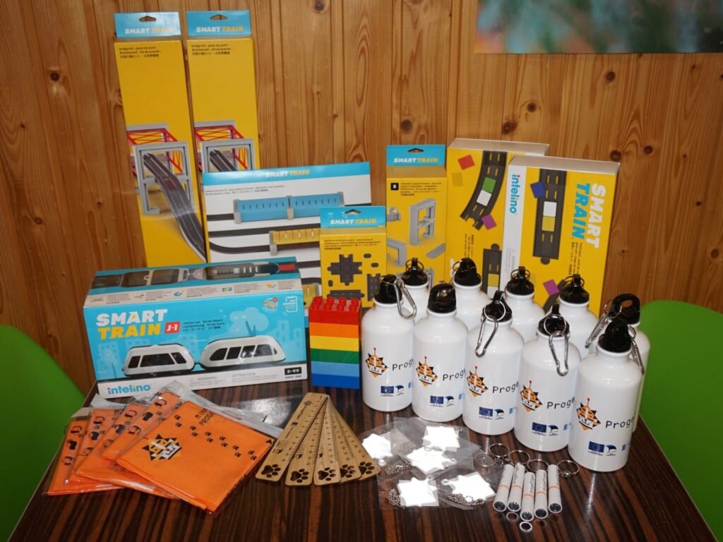 🟥 Esiteks toimus kogunemine ja ProgeTiigri meene valimine. Valikus olid veepudel, puhv, valgusega võtmehoidja, joonlaud ja helkur. Kõige populaarsemaks osutusid veepudelid ja valgusega võtmehoidjad, need said laualt otsa esimestena. Siinkohal suur tänu Haridus- ja Noorteametile ning „ProgeTiigri“ programmijuht Kirkele, kes meile need toredad meened saatis.