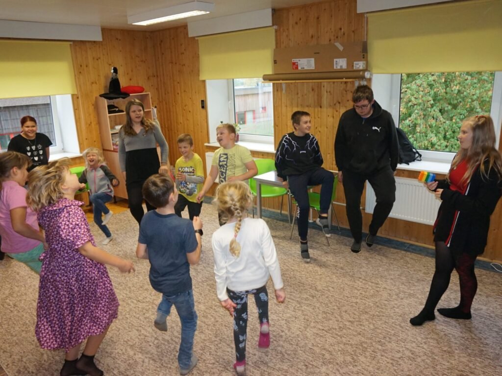 🟧 Teiseks saime me omavahel tuttavaks. Kõik noored seisid ringis, üks noortest astus ringi keskele, ütles oma nime ning lisas juurde sportliku liigutuse. Seejärel teised noored kordasid nime ja liigutust. Mul on väga hea meel, et kõik Vastse-Kuuste noored olid enda tutvustamisel julged ja loovad.
