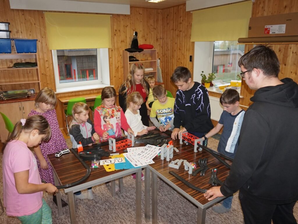 🟩 Neljandaks töötoa tegevuseks oli iseseisev Intelino nutirongi avastamine. Noortel tuli ilma pikema sissejuhatuseta hakata karpidesse pakitud Intelino nutirongi uurima. Nad pidid nuputama, kuidas sillad või rongipaviljonid ja tunnelid kokku käivad, kuidas rong tööle hakkab ja kuidas seda programmeerida saab. Põnevust ning eduelamust jagus küllaga.