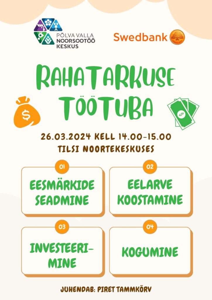 Märtsikuu teema on “Raha ja sissetulek” ja teemakuu raames toimuvad Põlva valla erinevates noortekeskustes põnevad rahatarkuse töötoad.