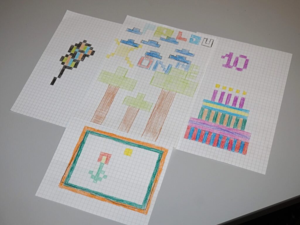 Pärast sellist ajugümnastikat ootas meid ees pikem paus koos mõnusate suupistetega. Ajasime juttu, saime paremini tuttavaks, puhkasime ja muljetasime kogetu üle. Seejärel läks puhkamine mõnusalt üle kolmandaks tegevuseks ehk pikslikunstiks. Noortel tuli ProgeTiigrile või Code Week programmeerimisnädalale valmistada 10 sünnipäeva puhul õnnitluskaart. Peale pingelist madistamist kulus selline omaette nokitsemine mõnusa jutuajamise saatel marjaks ära.