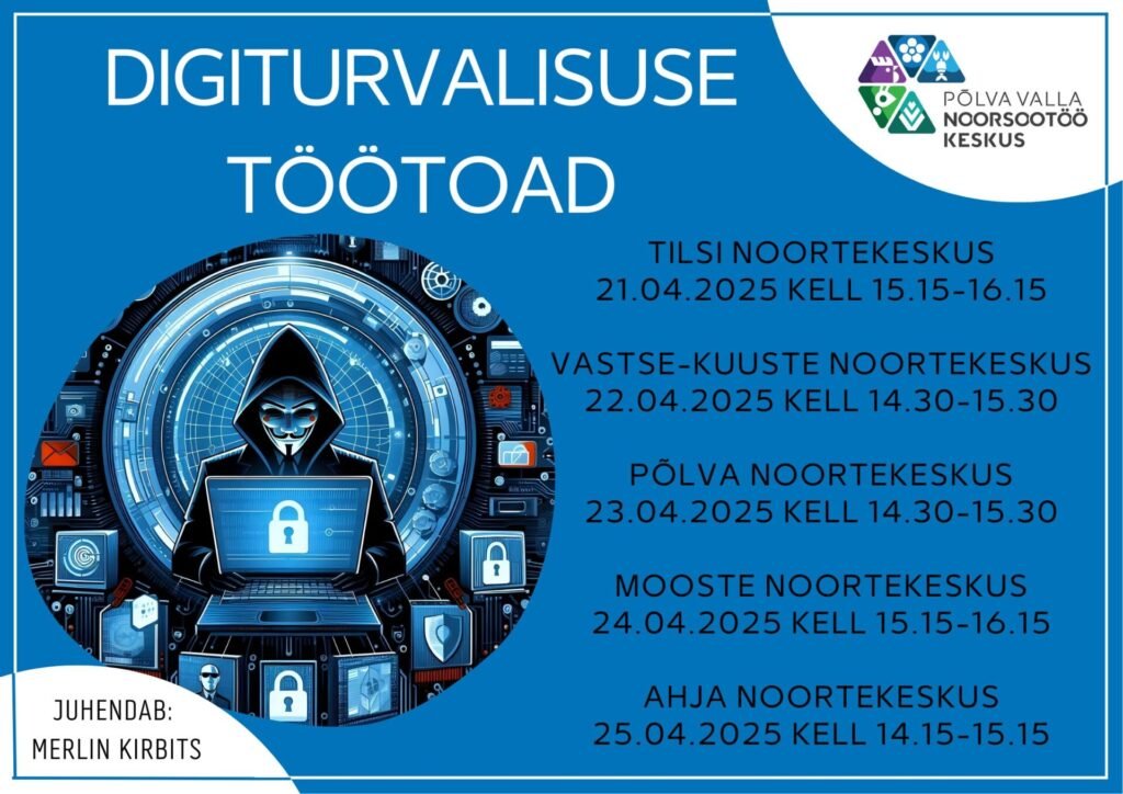 Põlva valla Noorsootöö Keskuse aprillikuu teema oli “Digiturvalisus”. Teemakuu raames toimusid 21.-25.04.2025 valla erinevates noortekeskustes põnevad ja silmaringi avardavad töötoad. Töötoad sisaldasid nii videote vaatamist kui väikeseid praktilisi ülesandeid.