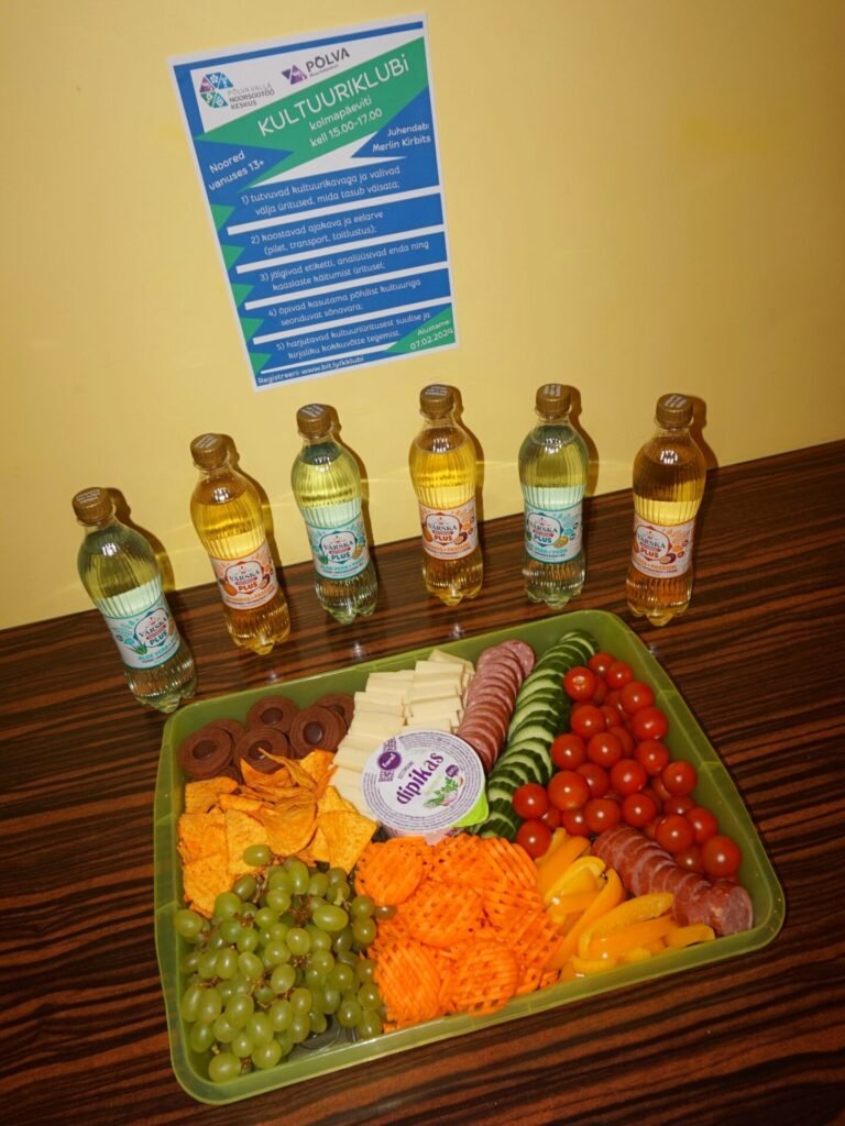 Kultuuriklubi kolmanda kohtumise juhatas sisse suupistete valmistamine. Näksimise kõrvale arutlesime, milliseid kultuuriüritusi noored on külastanud ning kuhu uuesti kindlasti minna tahaksid. Samm-sammult liikus jutt projektikirjutamise suunas ning tekkis kaks põnevat ideed: 1) teha Eesti teatrites väike külastustuur koos ööbimisega ning 2) ühendada omavahel kultuurileamus ja rahvustoit.