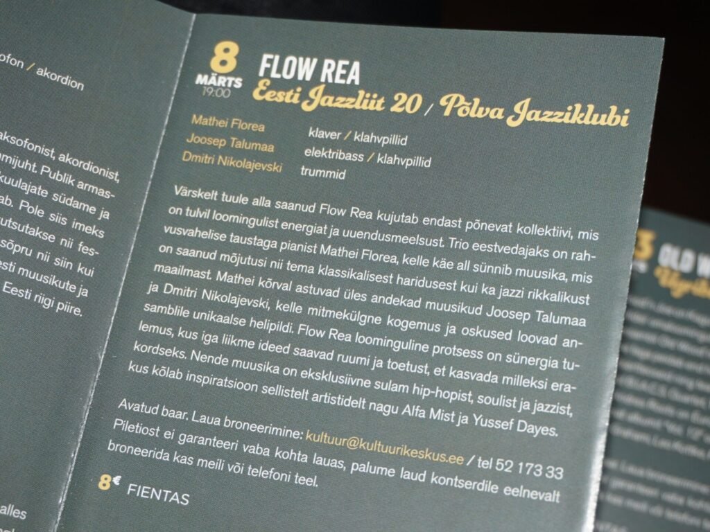 08.03.2024 jazzkontsert “Flow Rea”, Põlva Kultuurikeskus;