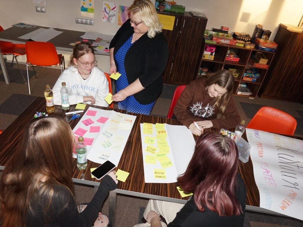 Kuna selgus, et noored pole Viljandi, Tallinna ja Pärnu teatritesse kordagi sattunud, siis otsustasime esmalt võtta silmaringi avardamiseks ette Eesti teatrite külastamise projekti. Kirja said projektis osalejate nimed, projekti idee tutvustus, probleemid mida noored lahendama soovivad asuda, esialgne tegevuskava ning loetelu uutest teadmistest. Ühtlasi panime kirja mõned mõtted, mis võiks projekti nimeks saada. Järgmisel korral arutleme, milline võiks olla projekti mõju nii noortele endile kui laiemale üldusele ja tegeleme eelarve planeerimisega.