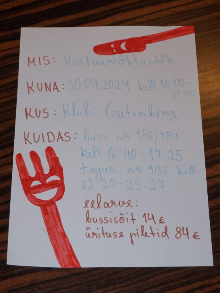 PS: Ootame jätkuvalt kultuuriklubiga liituma uusi noori, kellel on huvi kultuuriga lähemalt tuttavaks saada.