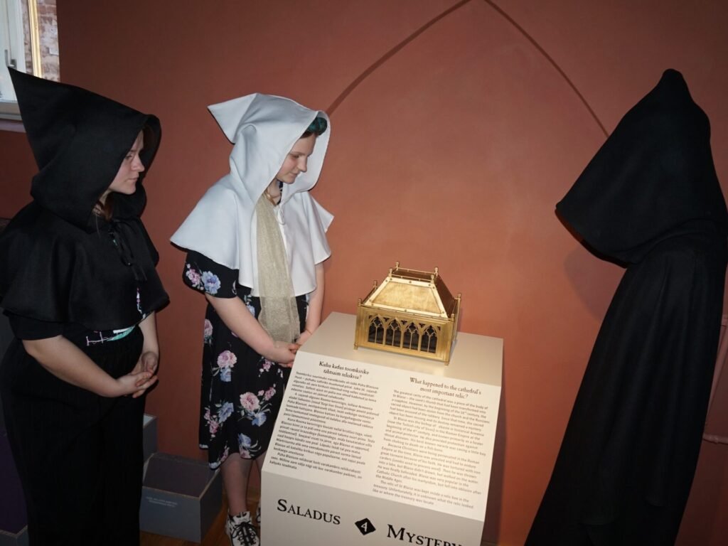🟪 Kuuendal korrusel asus Toomkiriku saladuste kamber, kus kultuuriklubilised lahendasid müsteeriumeid, katsetasid pihil käimist, uurisid peata ratsaniku ajalugu ja kõige lõpuks tõmbasid endale ka kirstust leitud kostüümid selga. Huumorit sai kõvasti!