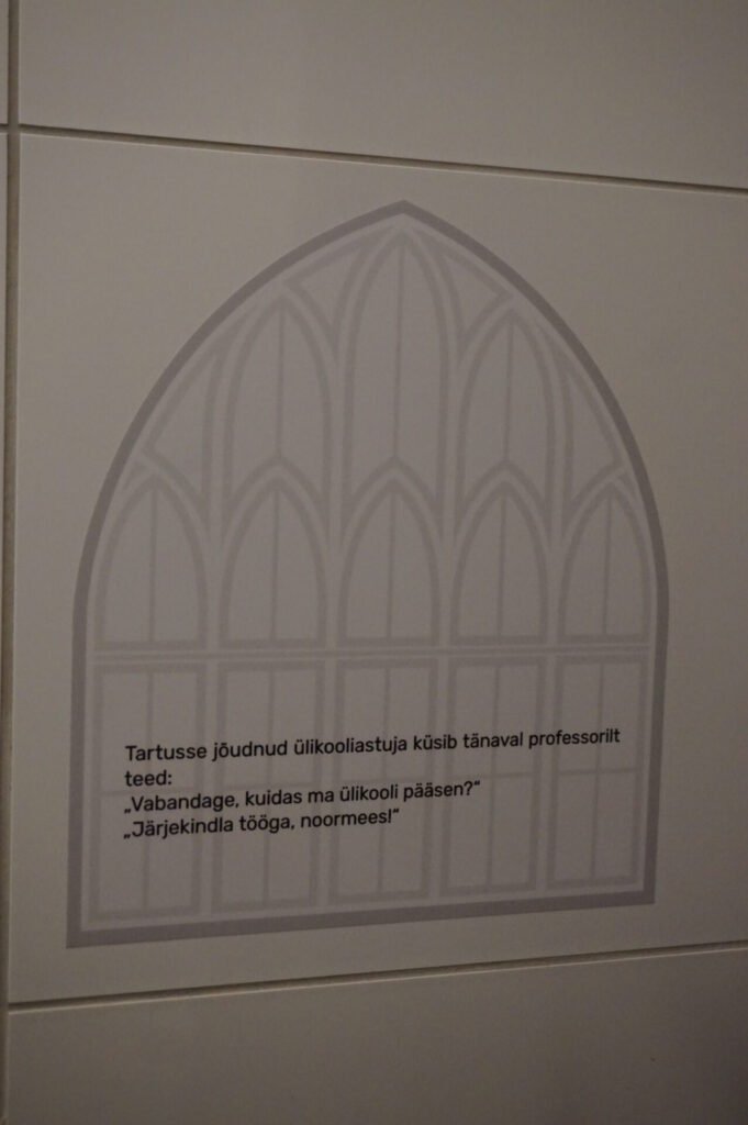 🟧 Teisel ja kolmandal korrusel tutvusime Tartu Ülikoolile tehtud kingitustega, spordivõistluse autasudega, õppejõudude isiklike esemete ja muude ülikooliga seotud eksponaatidega. Tõelise emotsiooni pakkus must kast, kuhu tuli käsi sisse pista ja ära arvata, mis kastis on (kusjuures ühes kastis oli näiteks inimese pealuu).