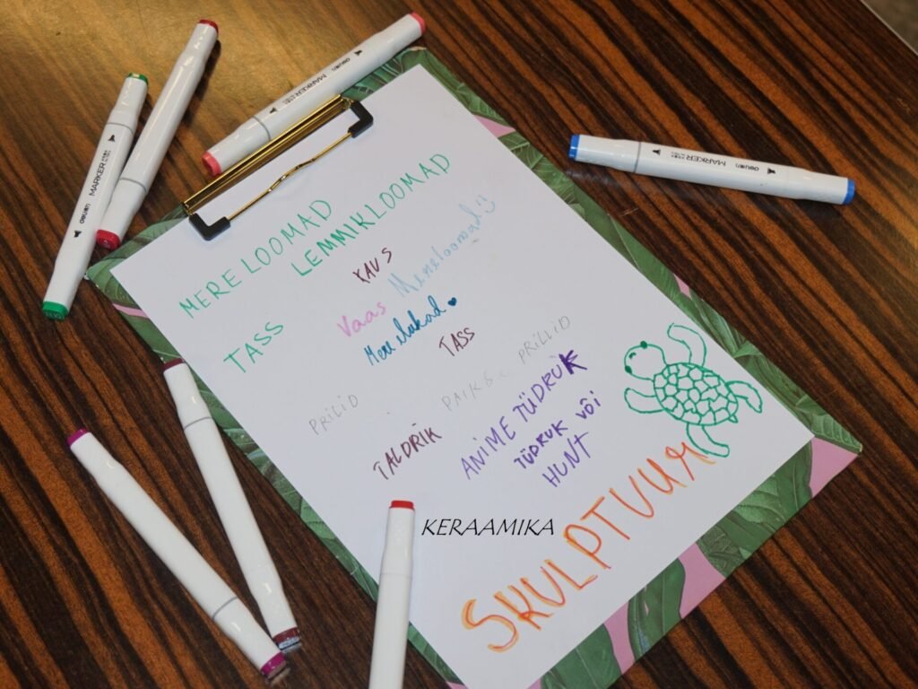 Ühtlasi tekkis meil mõte, et võiksime ka ise mõne huvikooliga ja õpetatava valdkonnaga lähemalt tutvust teha. Nii saigi kokku lepitud, et esmalt tutvume Anne Prangeli lahkel loal Põlva Kunstikooliga ning seejärel proovime Mart Vesteri käe all midagi imelist savist välja võluda. Igaks juhuks panime koos noortega varakult kirja ära mõned mõtted, mida keegi savist teha soovib. On, mida oodata!