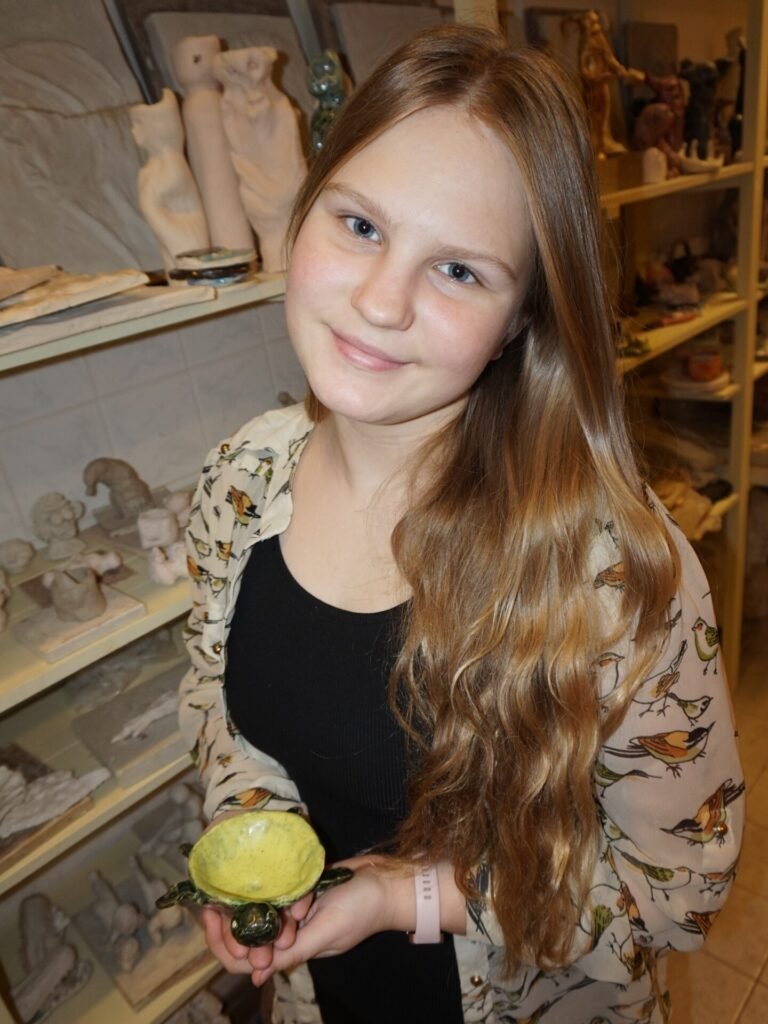 Seitsmes Kultuuriklubi kohtumine toimus Põlva Kunstikoolis, kus saime kätte oma hoole ja armastusega valminud tööd. Noored olid lõpptulemusega ülirahul ning põhjusega. Joosepile meeldis kõige rohkem tass, mis punase asemel oli hoopis kohati kelmikalt lillaks värvunud. Elele meeldis kõige rohkem taldrik ning eriti see, kuidas sügav samblaroheline värv valguse käes vastu läikis. Mirellele meeldis kõige rohkem kilpkonn, mida saab tulevikus kasutada väikeste kivide ja merekarpide hoiustamiseks.