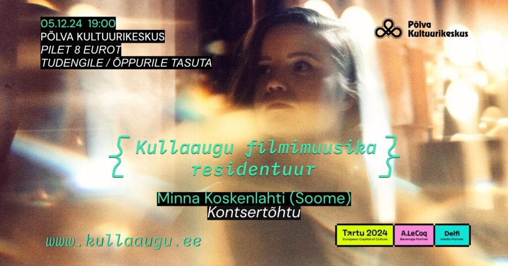 05.12.2024 kell 19.00-21.00 Põlva Kultuuri- ja Huvikeskuse undergroundis “Kullaaugu filmimuusika residentuur: Kontsertõhtu – Minna Koskenlahti (Soome)”;