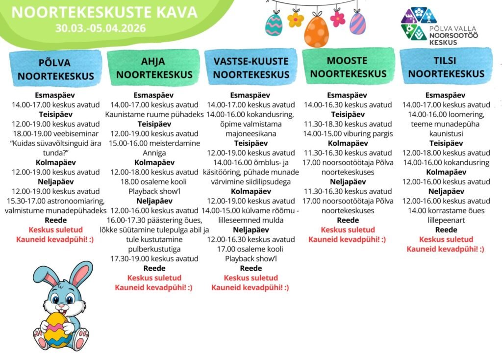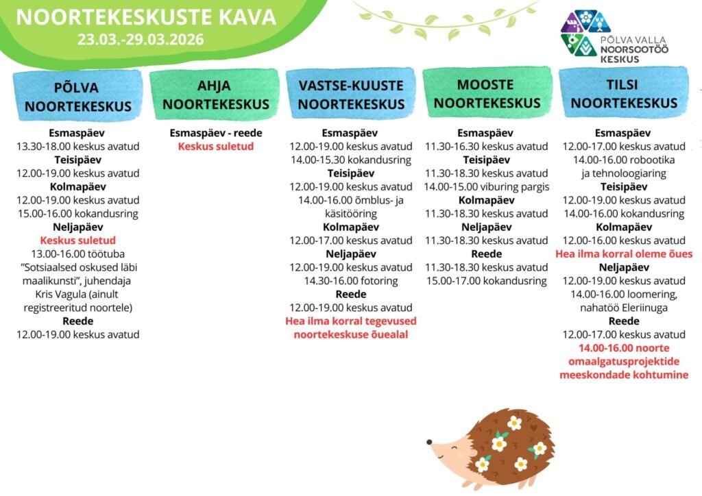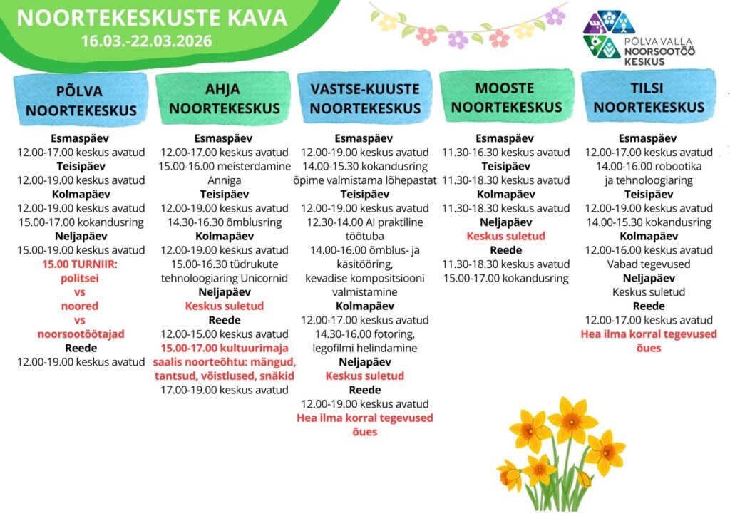 Noortekeskuste kava 09.03.-15.03.2026