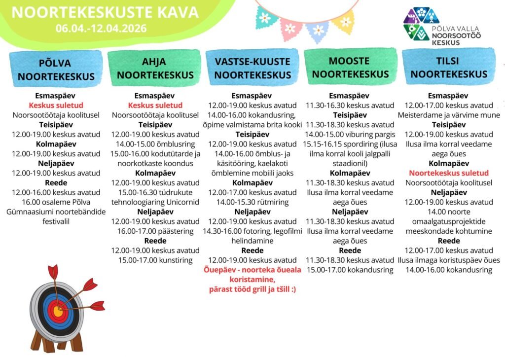 Noortekeskuste kava 09.02.-15.02.2026