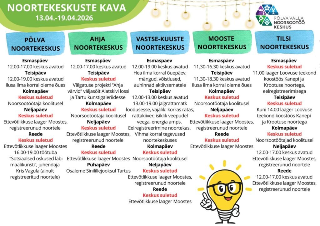 Noortekeskuste kava 12.01.-18.01.2026